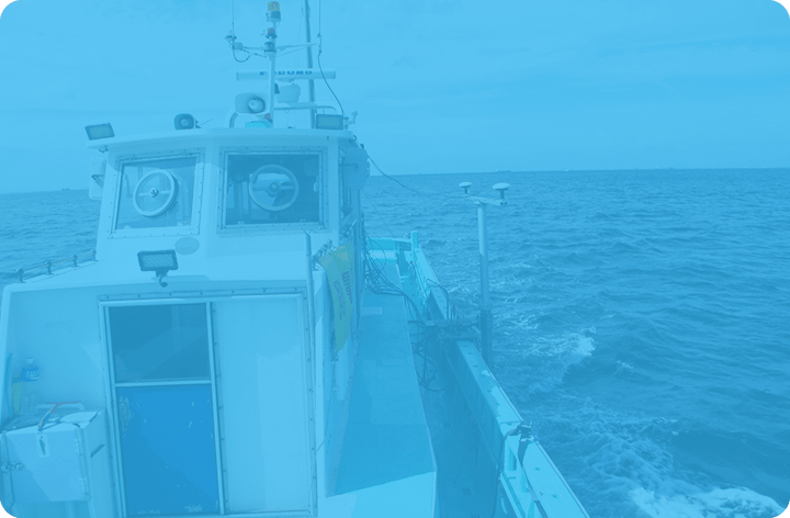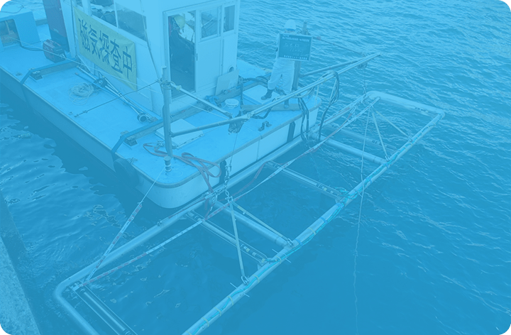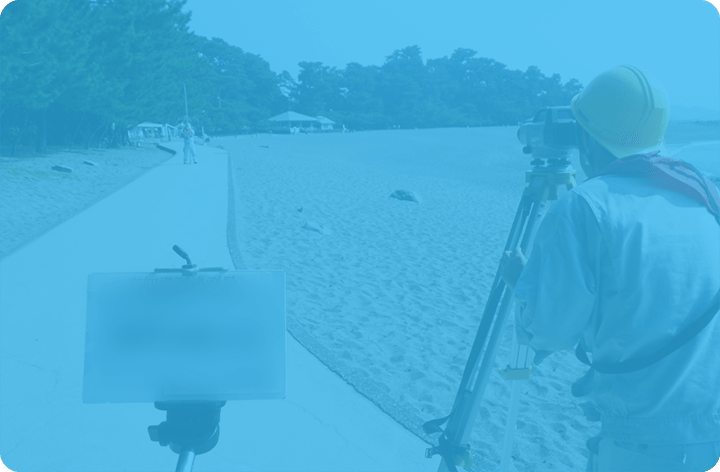 港湾整備事業などの開発行為や環境アセスメント評価、環境保全活動などのそれぞれの目的に応じて、現況の位置や地形形状を把握することは、最も基本的な情報の一つです。測量では陸域・水域と、それぞれのニーズに合わせた技術を提供します。探査では磁気探知機を使用して主に、危険物探査を行い、港湾工事などの安全に貢献します。