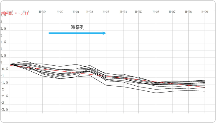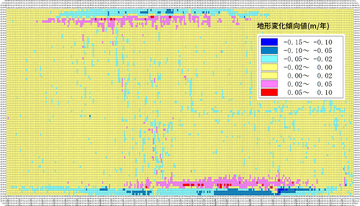 また、定期的に測量が行われている場所では、地形の変化傾向を数値化し、将来の地形変化の予測解析なども行います。